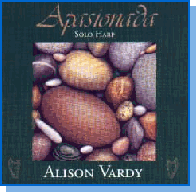 |Harping on a CD of solo harp music featuring the Paraguayan harp and a gut-strung Celtic harp. The 13 tracks include 5 of folk harpist Alison Vardy's own compositions, South American melodies, Celtic and Irish medleys, spirituals and more. (58 minutes of playing time). |